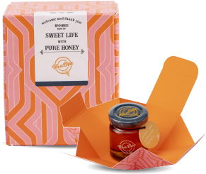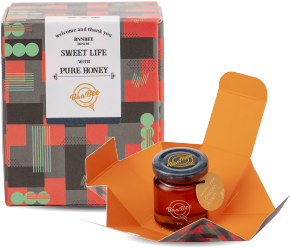 一體成形的設計,猶如含苞待放的花朵;打開禮盒的瞬間,與蜂蜜一同華麗綻放。在每次送禮的場合,都能適時地傳遞祝福與感謝。
